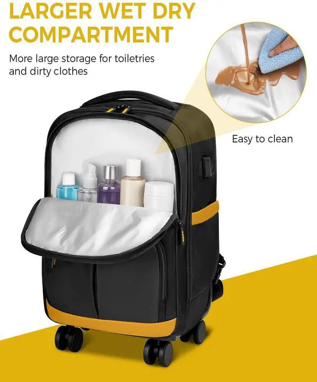 USB Port & Convertible Bag: This soft roller backpack has a built-in USB port (power bank not included) and converts to carry when space is tight, perfect for crowded trains or flights. The detachable shoulder straps can be folded into a hidden zipper compartment, making it switch to a spinner backpack or rolling computer bag easily. Reinforced bottom ensures the stability of the backpack on 4 wheels, there's loop and fastener cover 4 wheels ensuring your clothes won't get dirty