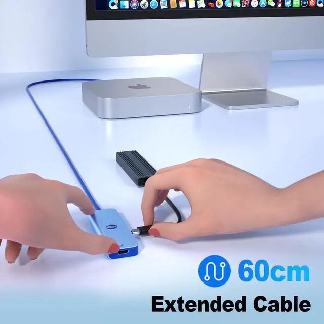 Plug & PlayThe usb c hub multiport adapter comes with 60cm cable, meeting many practical scenarios. It can be connected to laptops, mobile phones, tablets, etc. The Type C splitter is compatible with all devices with USB-C port, and support OTG, no additional drivers are needed.