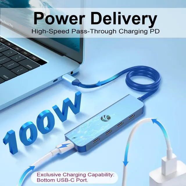 VCOM 10Gbps USB C Hub5 Ports USB Splitter with 100W Power DeliveryPortable USB C Multiport Adapter Compatible with MacBook Pro/Air, Surface Pro, Dell, HP, Microsoft, Not Support Monitor (Blue)