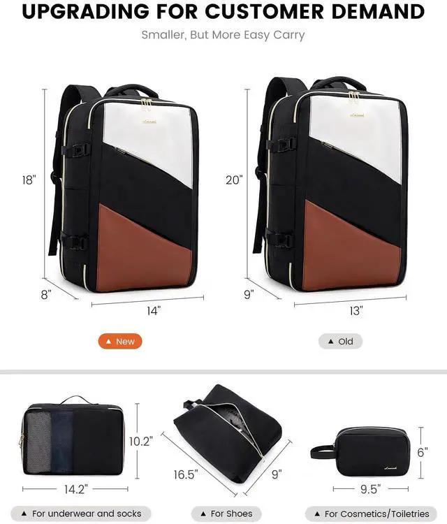 Upgrade Szie & MaterialUpgrading 8x14x18 inches with normal 40L travel backpack,meet smaller capacity demand.Upgrading polyester fabric and wet bag, more durable and practical for your daily,travel.