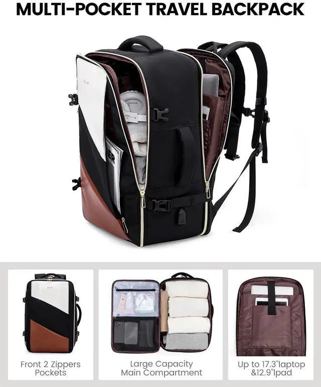 LOVEVOOK Travel Carry on Backpack, Large 40L Personal Item Travel Bag for Men & Women Flight Approved with 3 Packing Cubes, Suitcase Water Resistant Luggage Daypack Business Weekender Bag