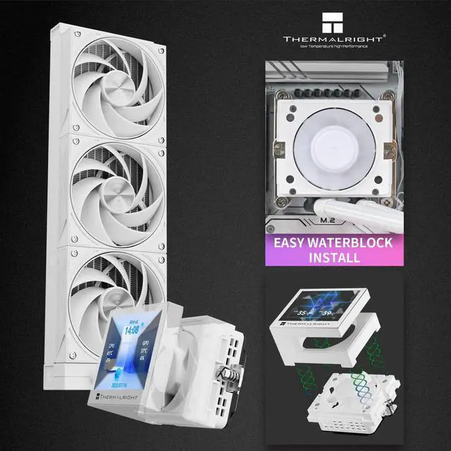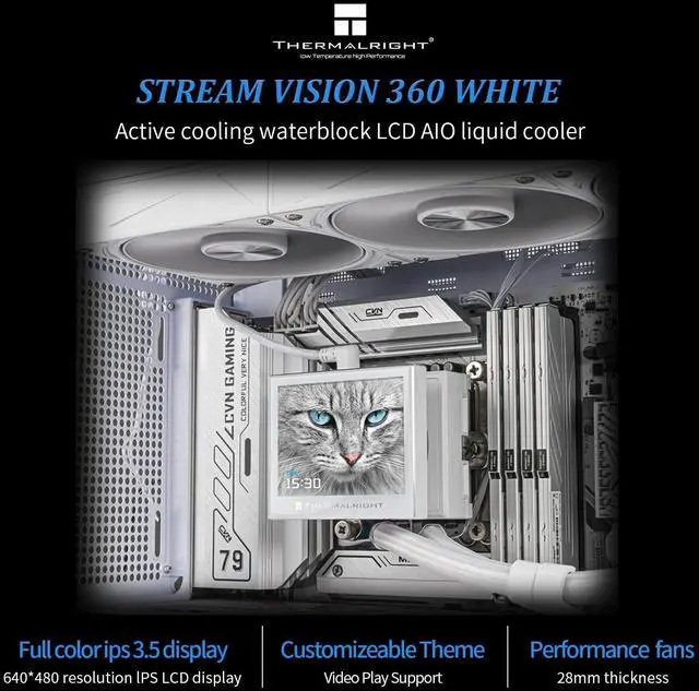 Thermalright Stream Vision 360 White-AIO Liquid Cooler,3x120mm Water Cooling,3.5in LCD Screen with Embedded Fan,for AM4/AM5,LGA1700/1851,High Performance Magnetic Cooling Head for 640x480 Resolution