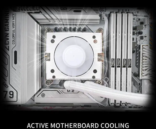 [Stunning Design - Embedded Fan]The magnetic cold head pump is equipped with a 60mm fan, which can provide heat dissipation airflow, reduce the power supply temperature, and provide cooling airflow for the core power supply module of the motherboard to ensure the stable output of CPU power supply.