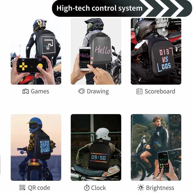 Dual App Support: This backpack is equipped with a 64x64 programmable LED screen, allowing users to display text, images, GIFs, and doodles via 2 apps. The LOY SPACE interface is simple and attractive, and can be used without registering an account. LOY PLAY requires account registration but supports more advanced features, such as short video display (less than 5MB), clock, and mini-games