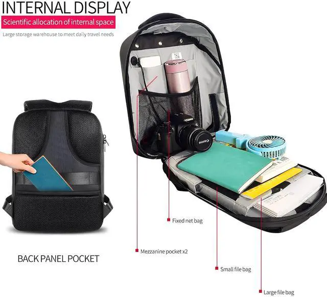 Dimension: With a 21L capacity and dimensions of 16.5 X 12 X 6.3 inches. Dual-layer storage, multiple compartments. This backpack can fit up to a 15.6" laptop and all your other essentials