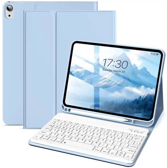 JKSML for iPad 11/10th Generation Case with Keyboard 11-inch A16 2025 10th Gen 10.9 Inch 2022 Wireless Detachable Folio Keyboard Cover Thin & Light with Pencil Holder (Blue)