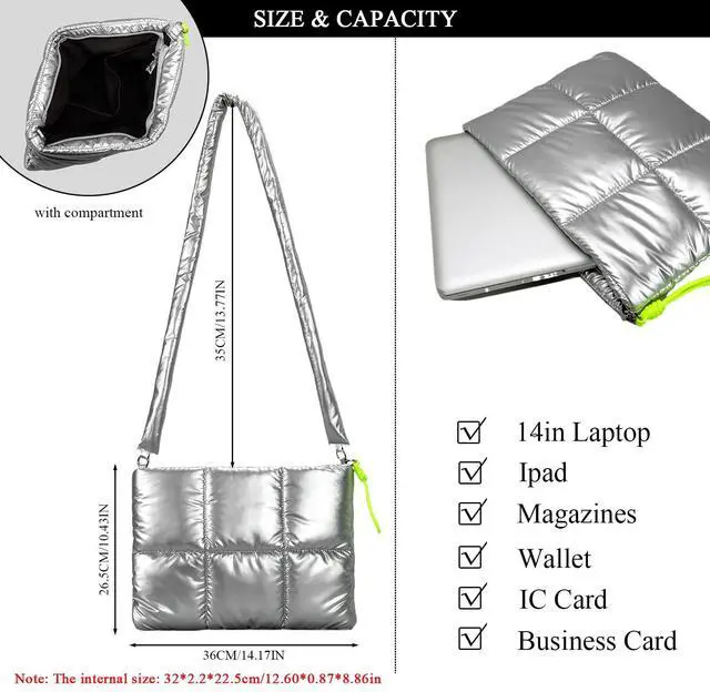 Size and Capacity- The internal capacity size of the puffer laptop sleeve is 32*2.2*22.5cm/12.60*0.87*8.86in, which provides enough space to store your 13 inch~14 inch devices and items.
