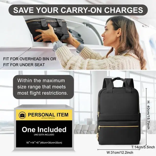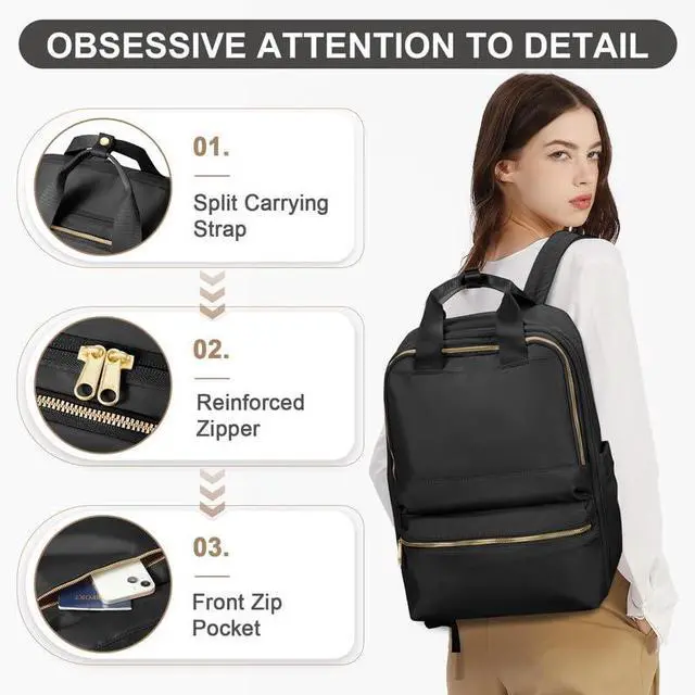 180° Expansion: The main pocket of this women's travel laptop backpack is designed with a special luggage-like structure, which can be fully expanded to accommodate more luggage. It is also designed with luggage securing straps that can be used with luggage.