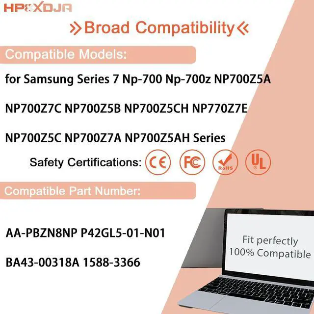 Compatible with AA-PBZN8NP battery. Replacement for Samsung Series 7 Np-700 Np-700z NP700Z5A NP700Z7C NP700Z5B NP700Z5CH NP770Z7E NP700Z5C NP700Z7A NP700Z5AH Series