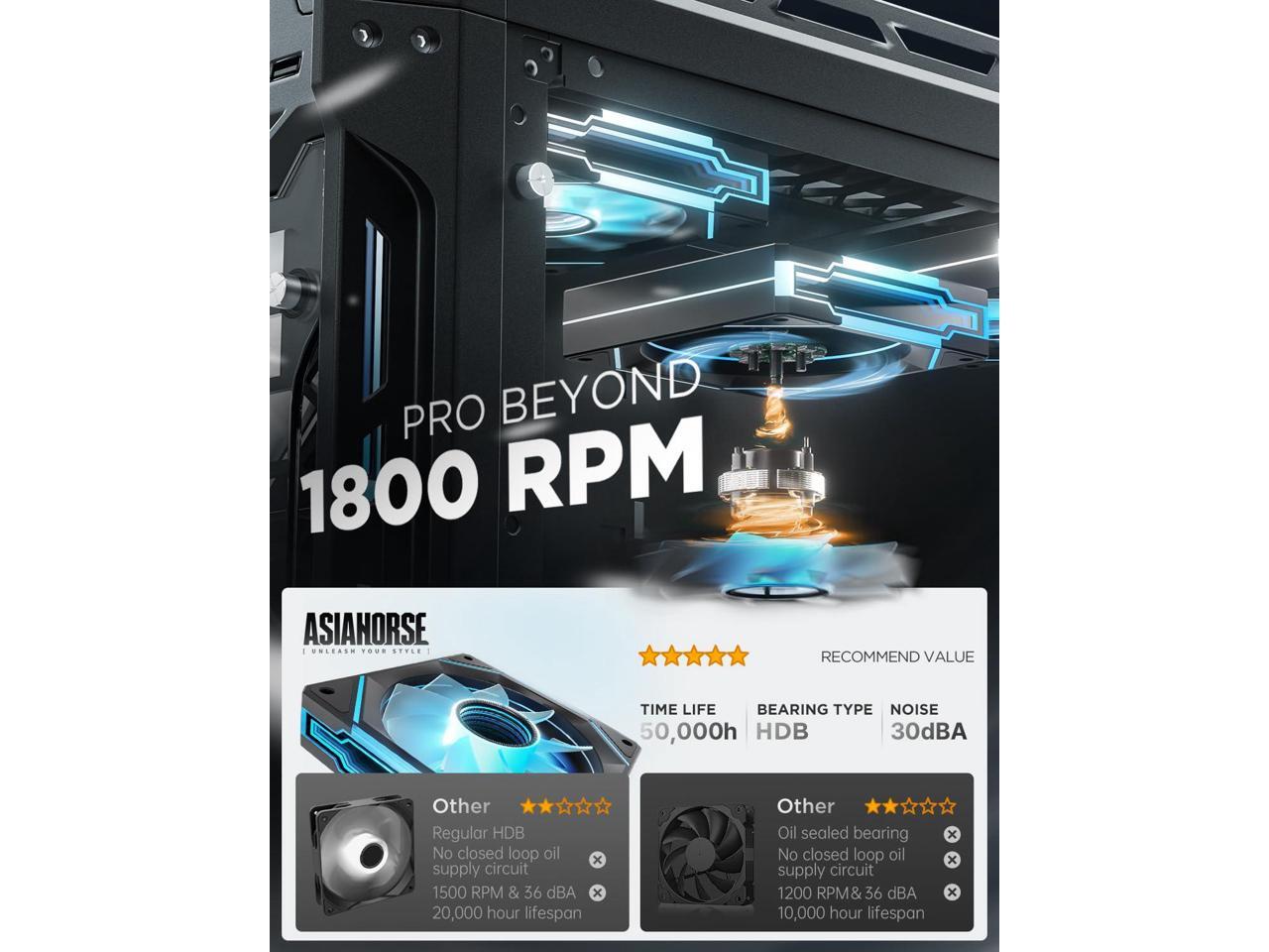 - Ultra-High Performance HDB: This AMICI rgb fans adopts ultra-high-performance HDB, filled with oil to create a film between shaft & sleeve. This reduces metal friction, evaporation, ensures lubrication, cuts wear, & enhances efficiency. This allows for smoother and quieter PC fan operation, and greatly extends the life of the argb fans