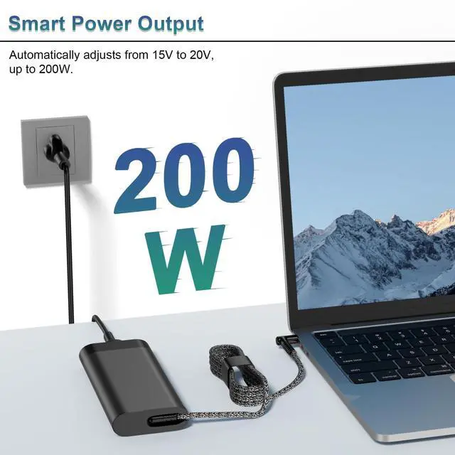 Connector Size: 4.5 mm x 3.0 mm Advanced Technology & Safe Charging Built with cutting-edge technology, this adapter delivers a stable 200W power output to support even high-performance gaming and professional laptops. It allows seamless operation while charging, ensuring consistent power supply for your device.