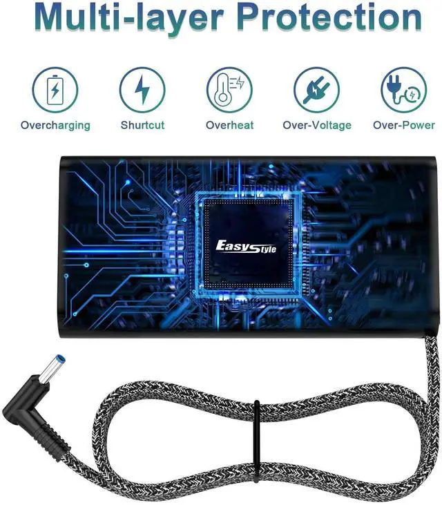 Multiple Safety Protections: Overcurrent & Overvoltage Protection Prevents excess current or voltage from damaging your laptop. Short Circuit & Overload Protection Safeguards against sudden electrical faults. Overheating Protection Keeps the charger cool and prevents overheating. Surge & Undervoltage Protection Shields your device from unexpected power fluctuations. Reliable, durable, and CE certified, this Compatible With HP laptop charger is the perfect replacement or backup adapter for your power needs. Stay powered up and protected with this trusted AC adapter!