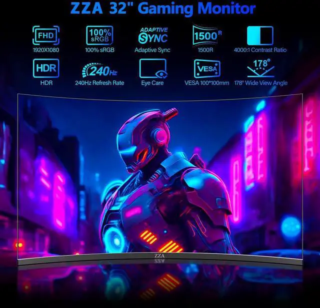 ZZA 32 Inch Curved Gaming Monitor 240hz, 1K 1080P Computer PC Monitor with 1500R ^^1ms (GTG) ^^ HDR 600^^Curved^^122% sRGB^^DP/HDMI^^VESA^^FreeSync & G-Syn, Mount Business, Office, Casual Gaming Monitors