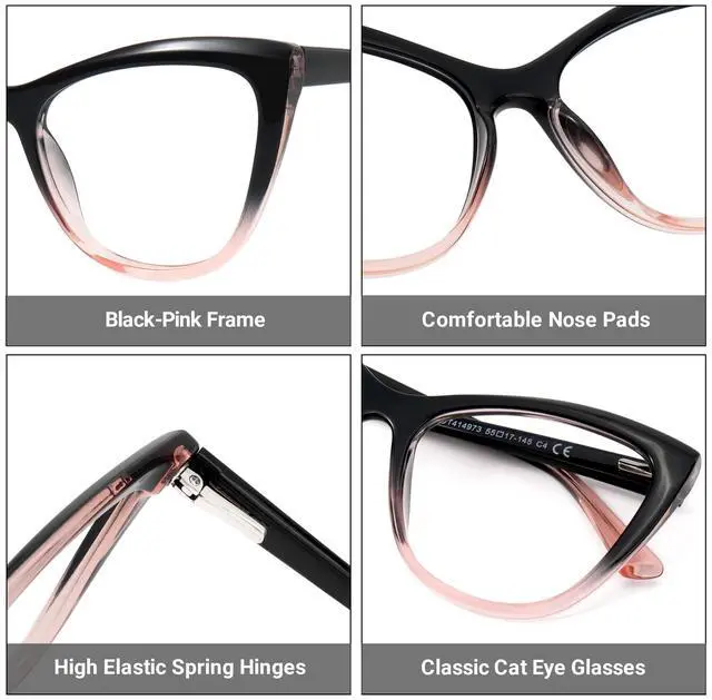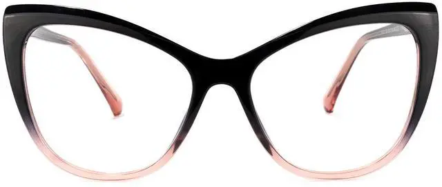 Zeelool Stylish TR90 Oversized Cat Eye Glasses with Non-prescription Clear Lens for Women Shelby OT414973-04 Black-Pink