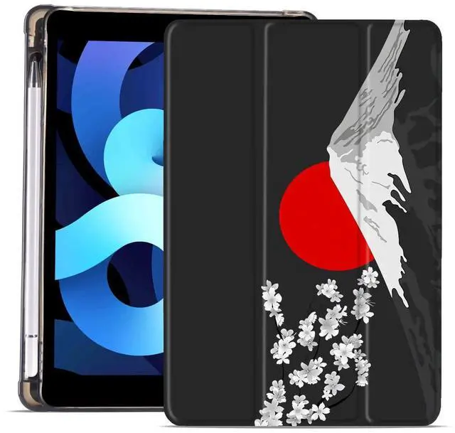 MAYCARI Flower Mountain Case for iPad Air5/Air4 with Pencil Holder, Cute for iPad 10.9 Inch 2022/2020 Protective Case with Soft TPU Back, Auto Sleep/Wake Cover Slim Shell