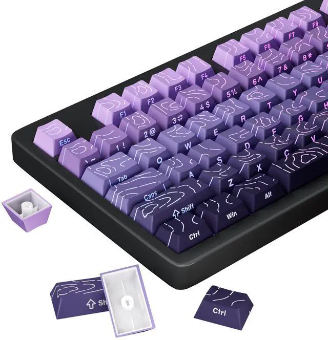 [ & ] Our 133 PBT Keycaps set can fit for full size mechanical keyboards (100%, 75%, 65%, 60%). Daily use, work typing, or gaming,your keyboard is fully covered. The 130 keycap set featuring Gradient Topographic design to make make your keyboard truly unique. Perfect designed for personalizing your mechanical keyboard.