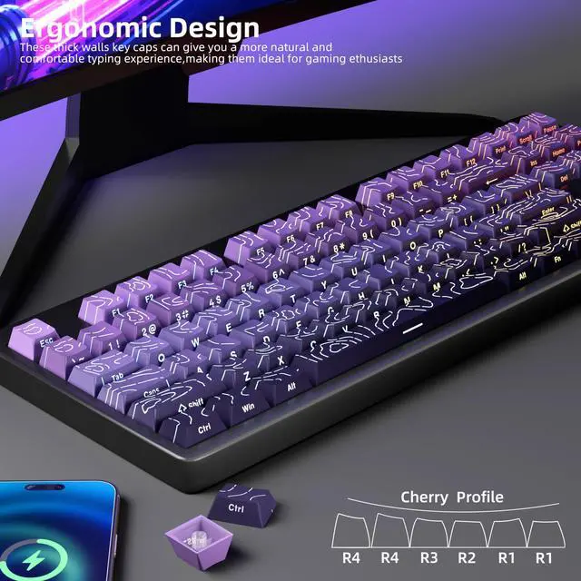 & You wont be tired after long time gaming or typing by the Cherry Profile keycaps. Its Classic Ergonomic design delivers a satisfying, deeper keystroke sound loved by enthusiasts. The keycaps set is also Easy to install and swap at any time.