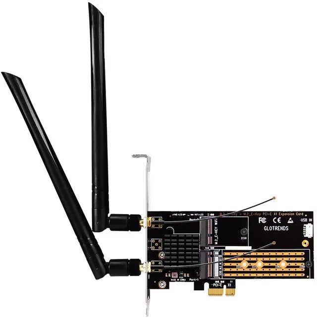 GLOTRENDS WA05 PCIe X1 Adapter for one M. 2 Key-E WiFi Module and one M. 2 NVMe SSD, 2 in 1 Combo Design