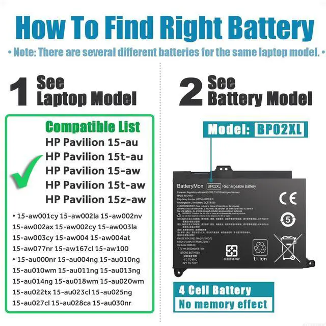 • Compatible with P/N: BP02XL BP02041XL BP02XL BP02 HSTNN-UB7B HSTNN-LB7H 849569-421 849569-541 849569-542 849569-543 849909-850 TPN-Q172 TPN-Q175 2ICP7/65/80.