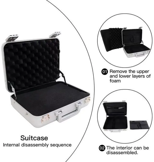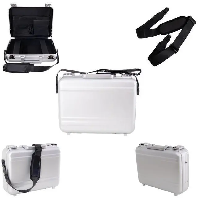 Hi-grade aluminum magnesium alloy material for body and frame. The material is durable, anti-shock and water resistant, fireproof, deformation resistance and compression resistance. Hard shell briefcase with aluminum frame for fragile items or valuable things.