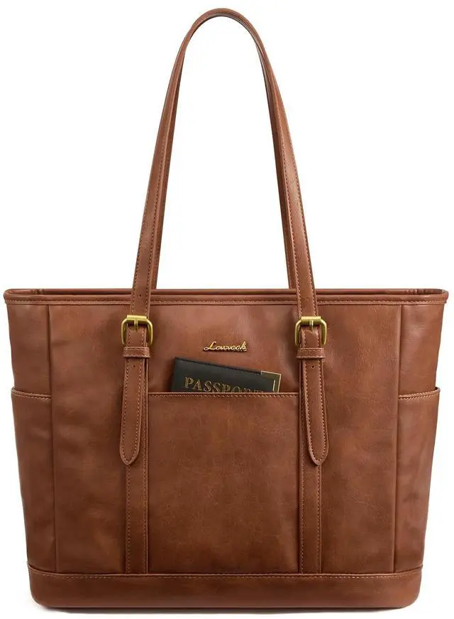 LOVEVOOK Laptop Tote Bag for Women, Vintage Leather Work Tote Bag for Women, 17.3 Inch Computer Briefcase Bag, Waterproof Teacher Business Office