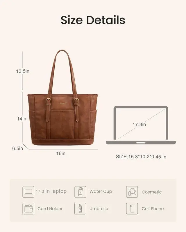 Introducing the LOVEVOOK Women's Laptop BagThis women's laptop bag blends vintage charm with modern fashion, and its clean lines and multiple pockets make this handbag a classic. No matter where you go, the lovevook laptop tote bag perfectly reflects your elegant and beautiful style.