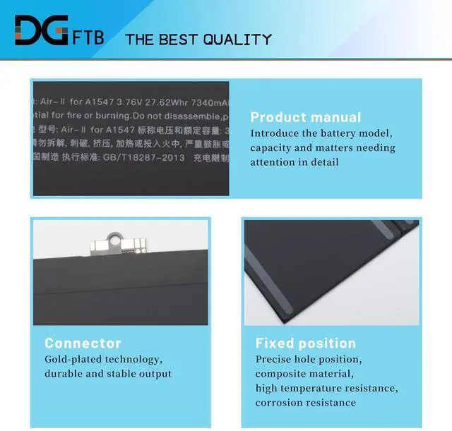 DGFTB A1547 A1566 A1567 New Tablet Replacement Battery for iPad Air 2 with Air 2nd Gen with iPad 6 Series MH0W2ll/a MNV72ll/a MH182ll/a MH1J2ll/a ( 3.76V 27.62W h/7340mAh)