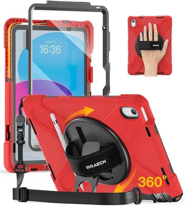 BRAECN for iPad (A16) 11th/10th Generation case 11/ 10.9 inch 2025/2022 Heavy Duty Shockproof Protective with Pencil Holder Screen Protector 360°Rotating Stand Handle & Shoulder Strap Full Body Cover