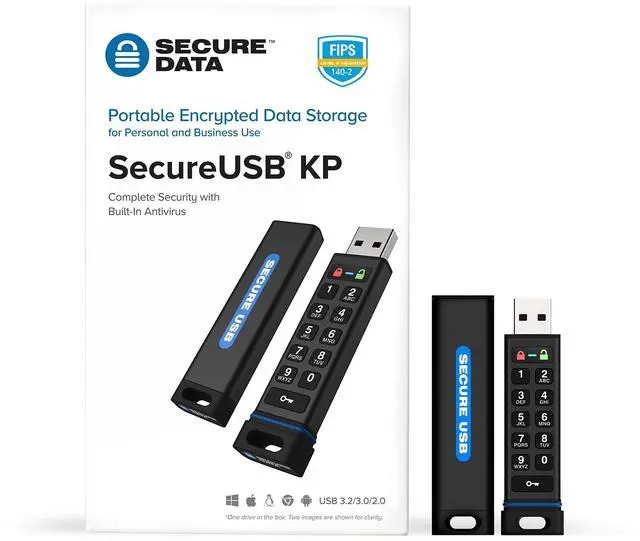 SecureData SecureUSB KP 256GB Hardware Encrypted USB Drive FIPS 140-2 Level 3 Unlock via Keypad TAA Compliant, CJIS, HIPAA, CMMC, GDPR Compliant, Works with Mac USB 3.0