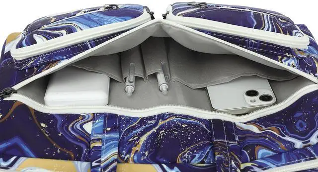 ront 4 zipper pockets . Has SO much extra room for chargers for phone and laptop, mouse, mouse pad, & has even more extra room to carry our 10" fire tablet, pens, & notebook.