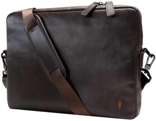The laptop messenger bag features a detachable shoulder strap with leather shoulder pad that has an adjustable shoulder drop of 14 to 28 inches.