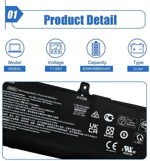 Dentsing 83Wh IR06XL Laptop Battery Replace for HP ZBook Power G7 G9 G10 Mobile Workstation ZBook Power G10 A Mobile Workstation Series IR06083XL M02029-005 TPN-DB0C M01523-2C2 11.58V 6880mAh