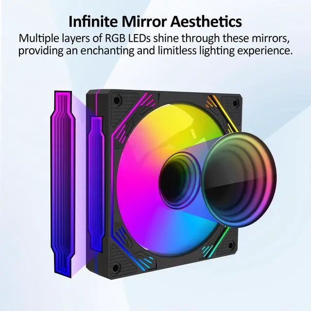 Vivid Addressable RGB Illumination: With three 120mm reverse fans featuring mesmerizing Infinity Mirror ARGB LEDs, allows for extensive color customization. These RGB lights seamlessly sync with your motherboard for a harmonious lighting experience.