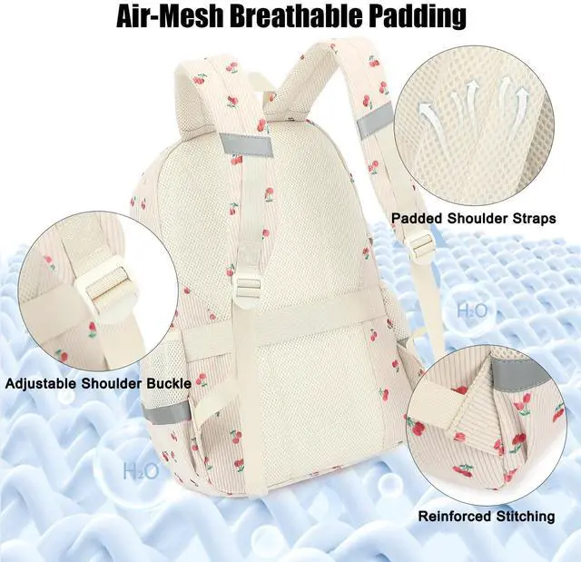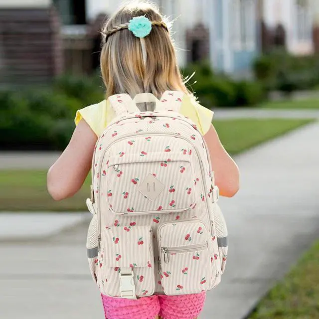 MaterialGirls backpack is crafted with tear-resistant soft corduroy fabric and reinforced double-stitched seams, the backpack features cushioned shoulder straps with ergonomic padding and a breathable back cushion that evenly distributes weight for heavy loads.