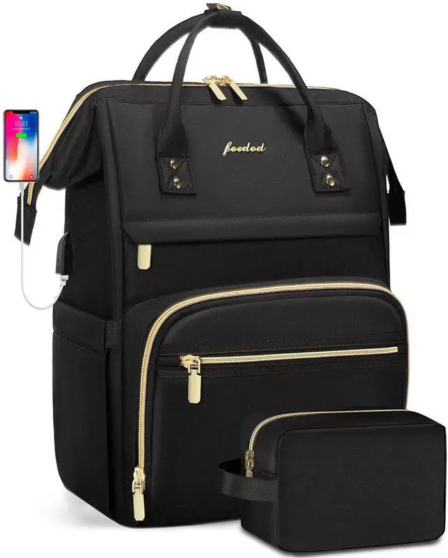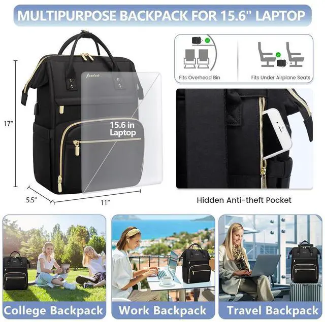 Focdod Backpack for Women 15.6 Inch Laptop Backpack Work Business Backpacks Purse Waterproof Computer College Backpacks Nurse Bag Backbag 2 Sets Casual Daypack for Travel Black