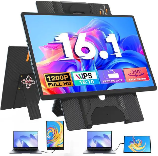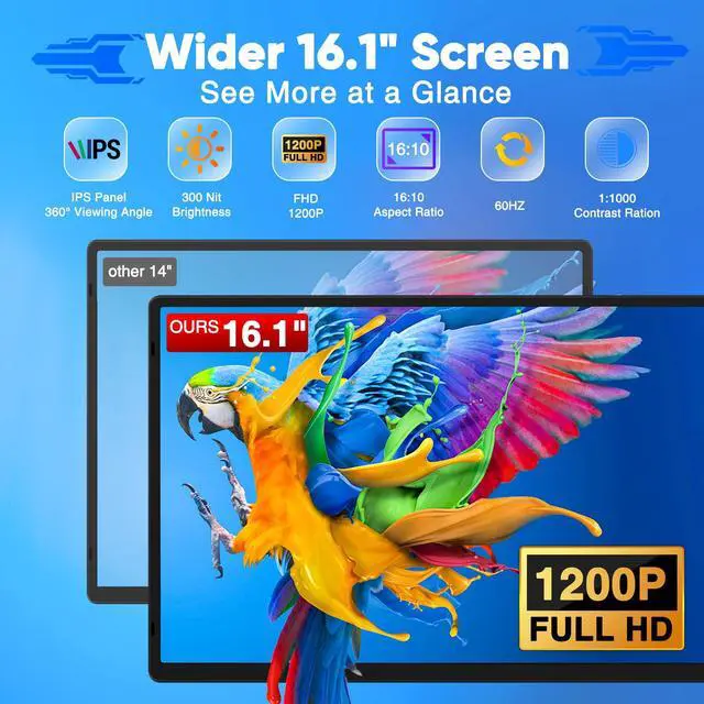 [1200P FHD IPS Monitor for Visual Enjoyment]: Setcold laptop screen extender not only equips with 16.1 inch bigger screen, but also has 1920x1200 resolution, 16:10 aspect ration, 100Hz refresh rate, 300cd/m² brightness, 125% sRGB and 90% NTSC. Delivering vibrant, true-to-life colors and ultra-fluid motion for gaming, creative work, and entertainment.