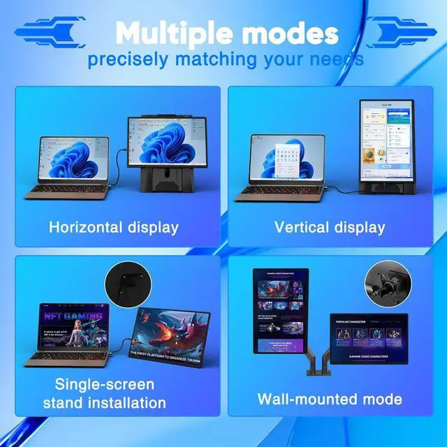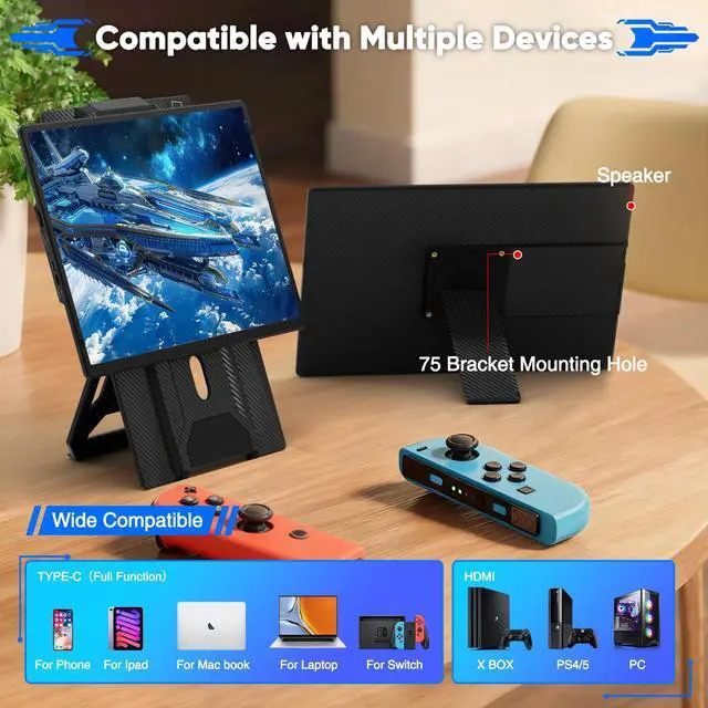 [Broad Compatibility] Our new monitor extender has been upgraded to fit 13.3-17.3 laptops. In terms of connectivity, this laptop monitor is compatible with a wide range of devices such as Windows, Mac, Chrome, Android, Linux, Dex and Switch. Plug and