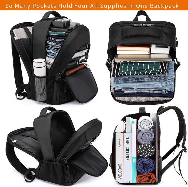 TSA BACKPACK FOR TRAVEL & MULTIPURPOSE - Checkpoint fast approved feature design, makes it pass quickly and easily by unfolding the laptop flat freely 90°-180°without removing your laptop. The large backpack is perfect for indoor/outdoor activities.Served as a large laptop bag ,large college backpack for men, large business backpack .Mens backpack can use as daily /college/ work /occasional international Travel / Weekend short trip getaways / Airplane travel / Hiking Camping / overnight.