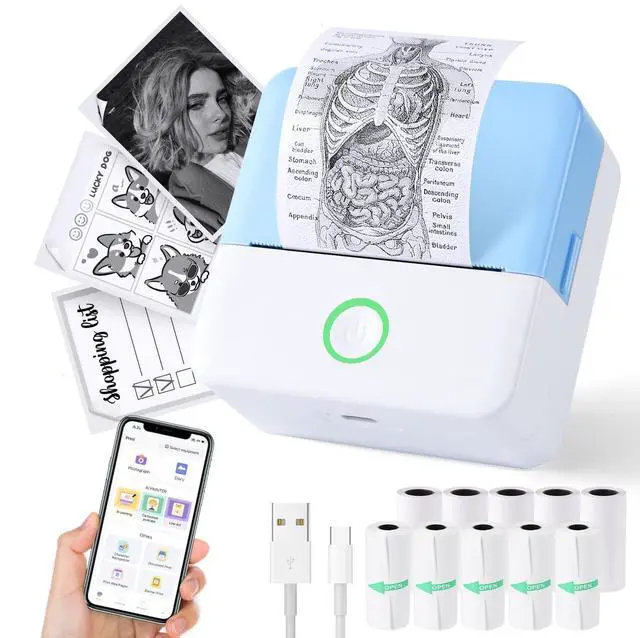 Customized Thermal Inkless Printer: The Inkless sticker printer uses thermal printing technology and is equipped with 5 rolls of adhesive printing paper & 5 rolls thermal printing paper , ink-free printing, the 2-inch wide thermal paper can be freely cut to length or shape, as well as labels size to create your own sticker ideas anytime, anywhere (Black and White only)