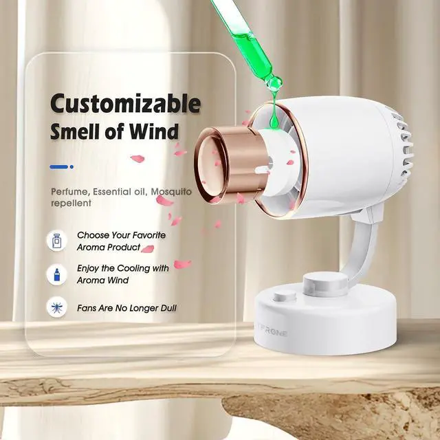 Cyfrone Portable Small Aroma Desk Fan - USB-C Rechargeable 4000mAh 4 Speeds Mini Quiet Table Fans Tilt Adjustable for Bedroom Office & Home, 9H (White)