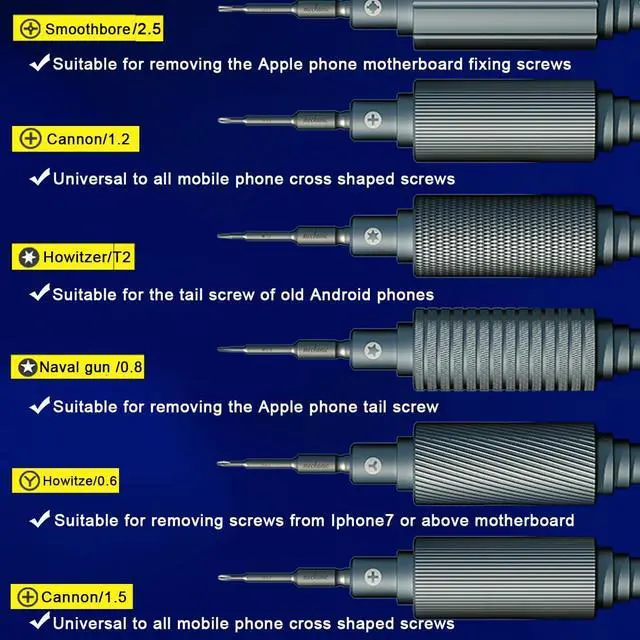 • 6 IN 1 Magnetic Precision Screwdriver 1.5 1.2 Phillips 0.8 5-Point 0.6 Y-Type Cross 2.5 T2 HEX For IPhone/Android Repair Tools