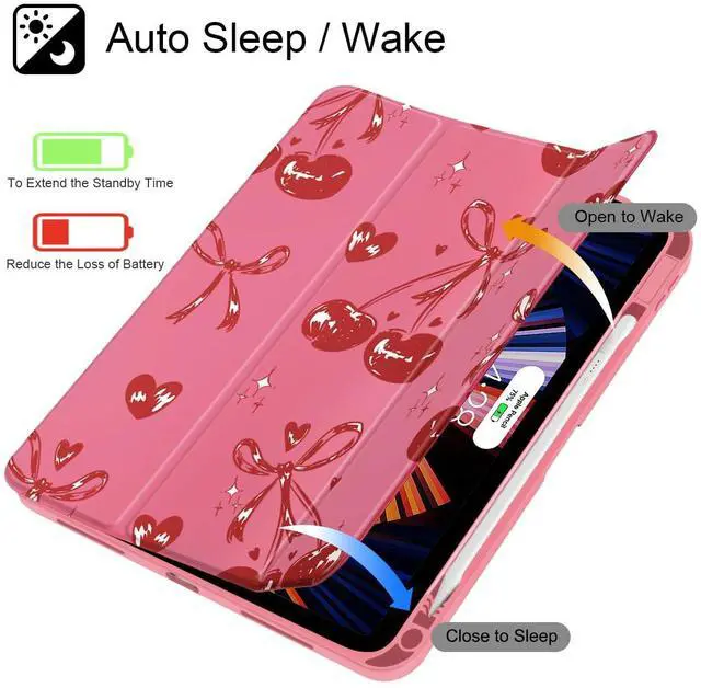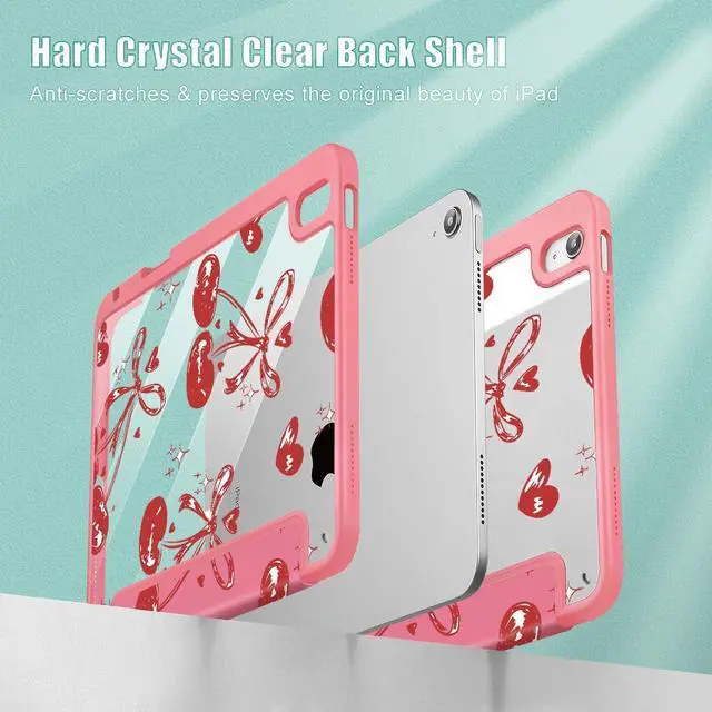 Mektron Case for iPad Air 11 inch (M3 2025 7th /M2 2024 6th), Compatible with iPad Air 10.9" (2022 5th Gen /2020 4th Gen), Buit in Pencil Holder with Shockproof Clear Shell, Cherries Bows C288