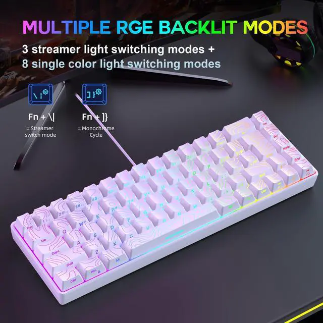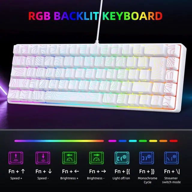 Snpurdiri 65% Wired Gaming Keyboard, 68 Keys RGB Backlit Ultra-Compact Small Gaming Keyboard, for PC/Mac Gamer, Typist, Travel, Easy to Carry on Business Trip White