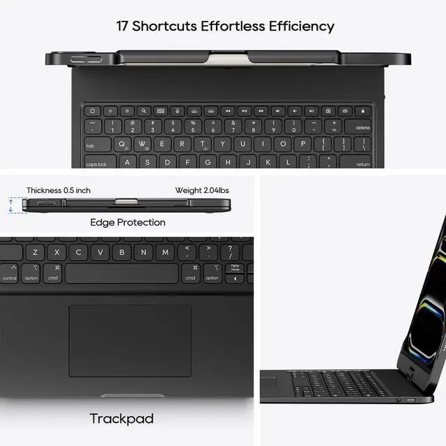 - : Boost your productivity with the precise trackpad of iPad keyboard. Effortlessly and accurately navigate the cursor to swipe, pinch, zoom, scroll and more.