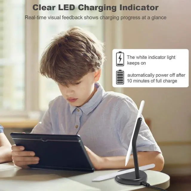 Clear LED Charging Indicator: Offers real-time visual feedback with a constant glow during charging, so you can monitor your pencil's battery status at a glanceno need to pick it up. Once fully charged, the device automatica