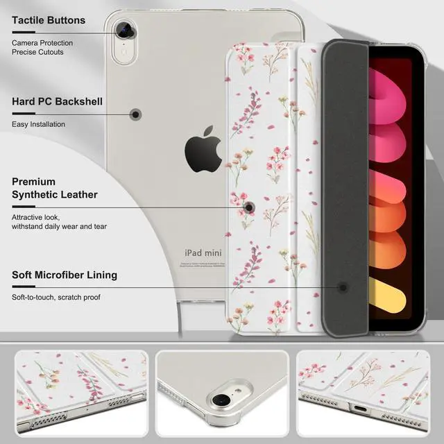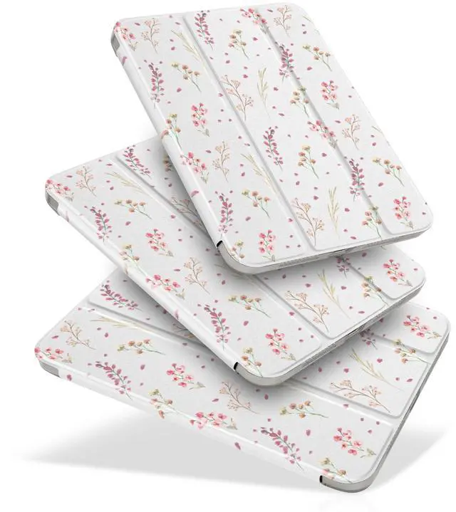 MecBevia for iPad mini 7 (A17 Pro) 8.3-inch 2024(Models A2995/A2996/A2993) / iPad mini 6 8.3-inch 2021(Models A2567/A2568/A2569), 7th/6th Gen Hard Back Case with Auto Wake/Sleep, Watercolor Flower