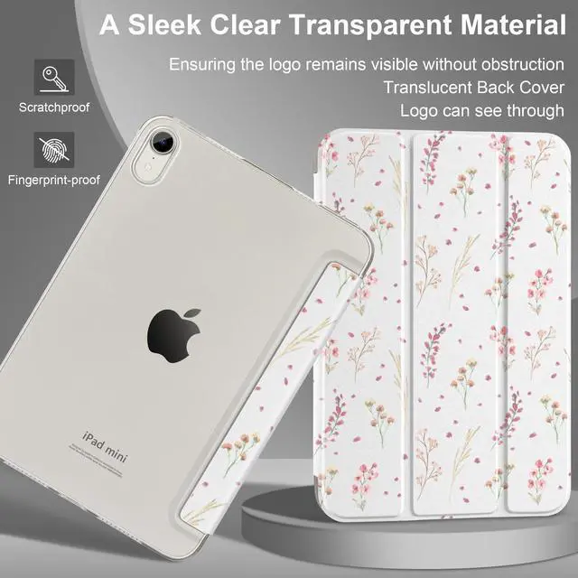 The translucent frosted back cover lets you see the Apple icon in your favorite color, while the front cover combines a premium PU exterior, microfiber lining, and soft TPU for excellent scratch, impact, and drop protection to ensure long-lasting protection for iPad mini 7th/6th Gen