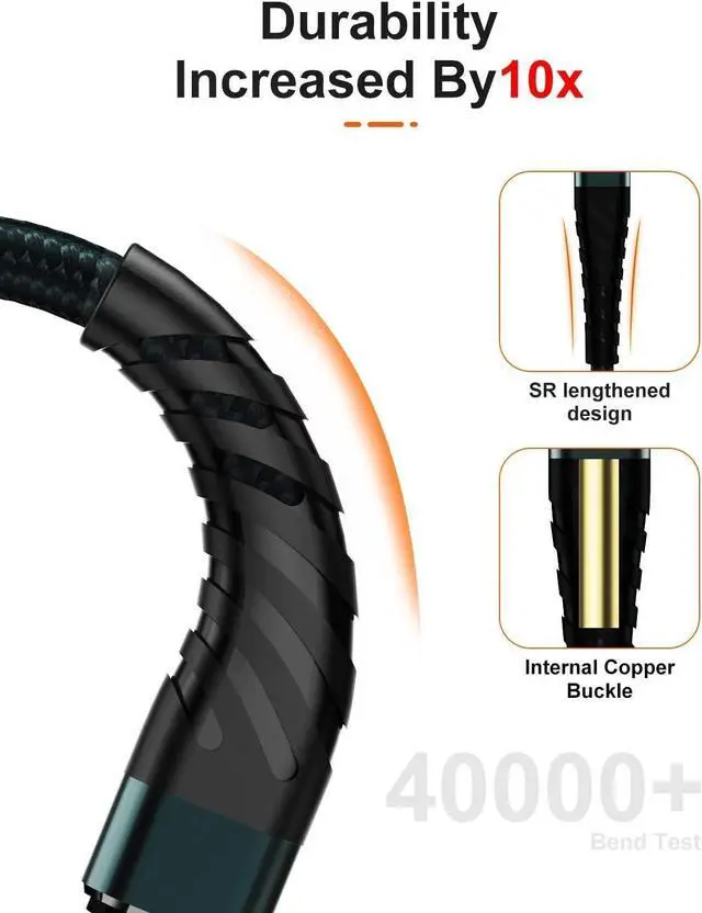 1. Double-braided nylon exterior, toughened aramid Fiber core and laser-welded connectors equip these cable with superior toughness from end-to-end.