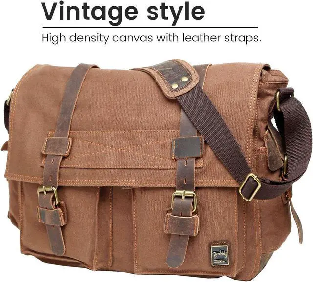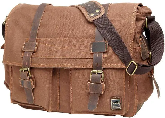 Berchirly Classic Laptop Messenger Shoulder Bag Satchel Men Women Canvas Leather Crossbody Bags 17.3I nch