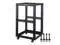 STURDY : 4-post construction, heavy-duty, SPCC cold-rolled steel can safely support up to 600 lbs of rack mounting equipment with leveling feet, and 500 lbs with casters. The black RAL9005 powder coat finish makes this solid 18u home rack resistant to scratching and rusting